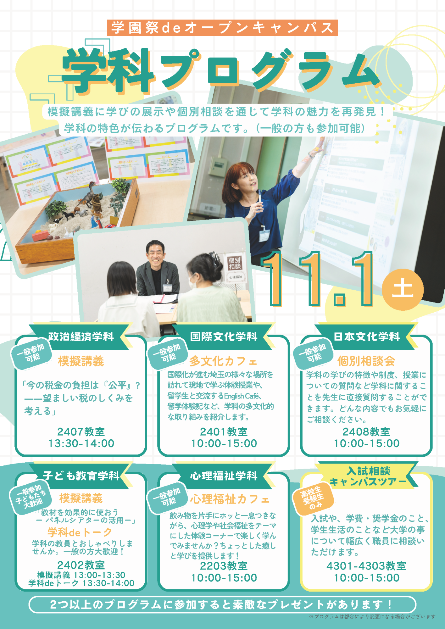 学科の特色が伝わるプログラムをご用意してお待ちしています。受験生の方はもちろん、一般の方もお気軽にご参加ください。