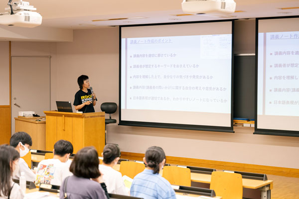 講義方式入試の模擬講義を受け、実際に講義ノートを作成することができます。また、本番を想定したノートのとり方のコツや、学生による発表のポイントもお伝えします!
