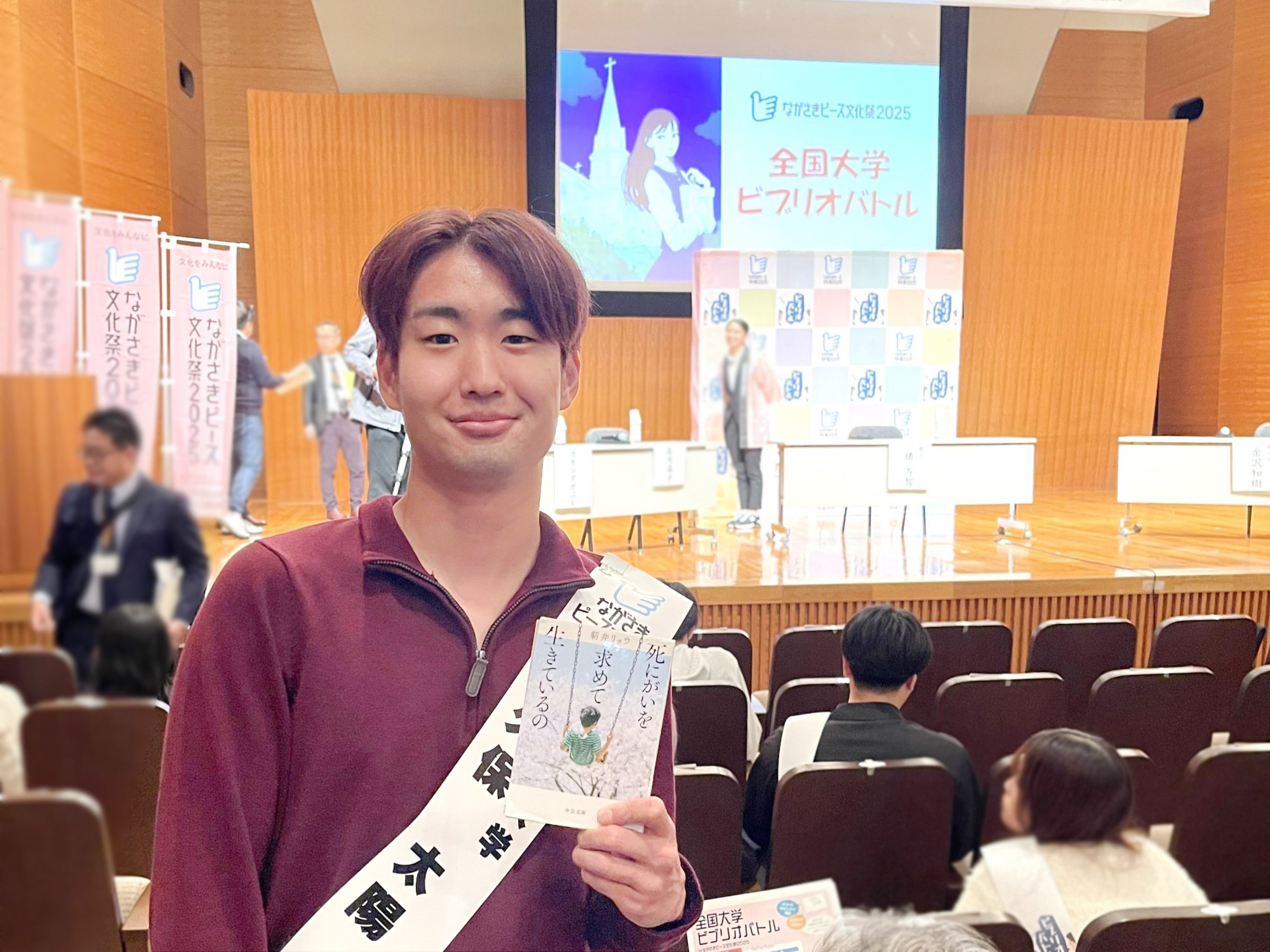 NEW日本文化学科4年 小久保 太陽さんが、2025年11月23日(日・祝)に長崎県佐世保で開催された「全国大学ビブリオバトル in ながさきピース文化祭2025(第16回全国大学ビブリオバトル)」に関東Bブロック代表として出場しました。
