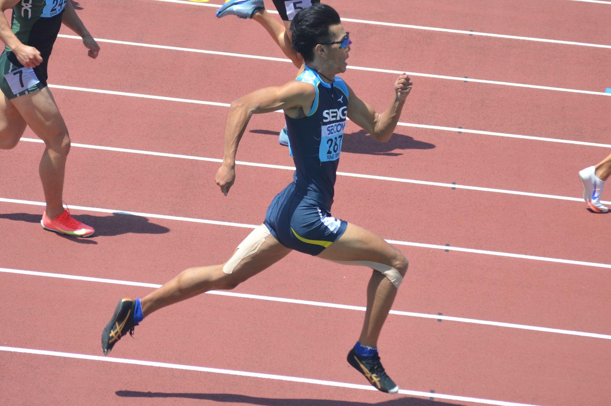 第104回関東学生陸上競技対校選手権大会 男子2部校200m予選4組(5/10・神奈川県相模原ギオン競技場於)に出場した池田康生さん(心理福祉学科3年)は、21秒49(+0.7)で走り3位で予選通過すると、翌日の男子200m準決勝1組(5/11)でも、21秒32(+1.1)で走り3位となり決勝進出を決めました。同日に行われた決勝では、21秒22(+2.2)で力走し5位入賞を果たしました。