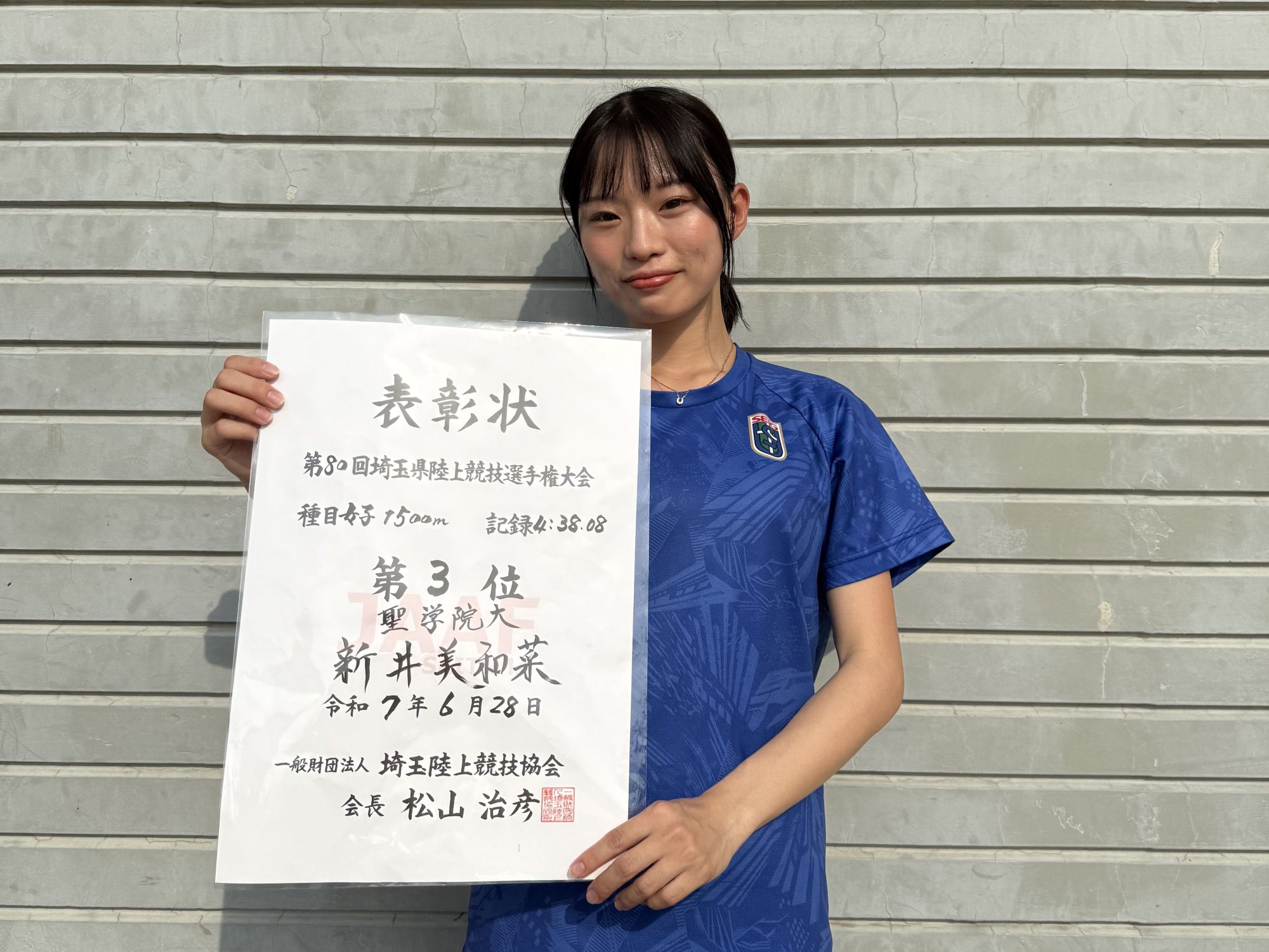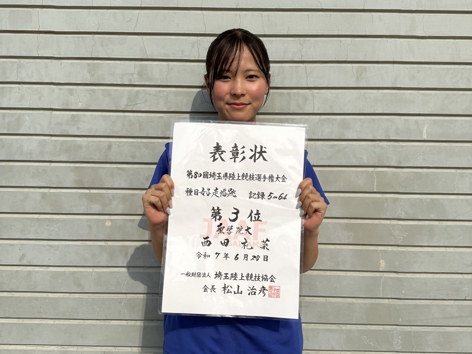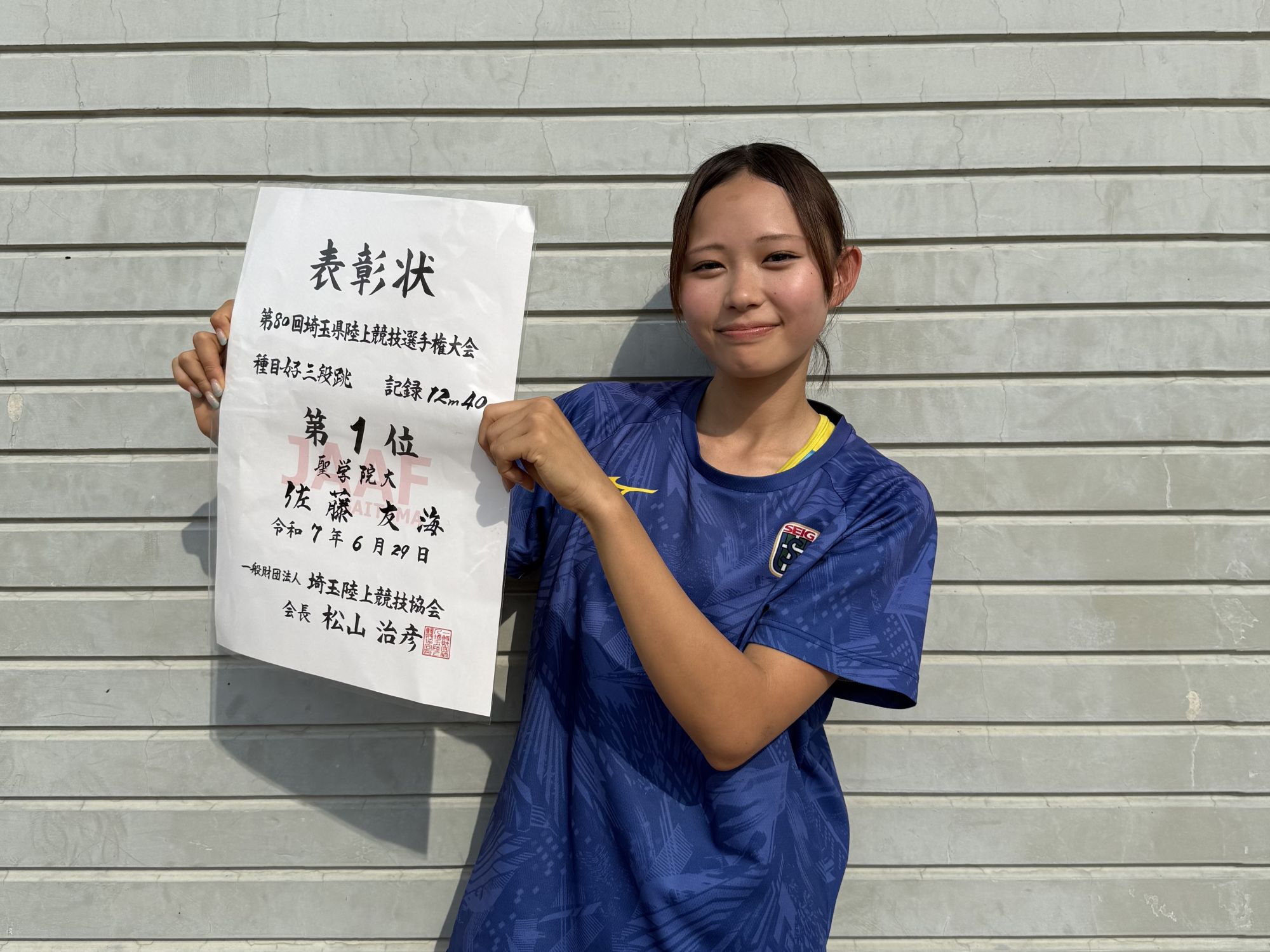 佐藤さんは、第80回埼玉県陸上競技選手権大会(6/29・熊谷)女子三段跳び決勝において優勝し埼玉県チャンピオンとして本大会に出場しました。