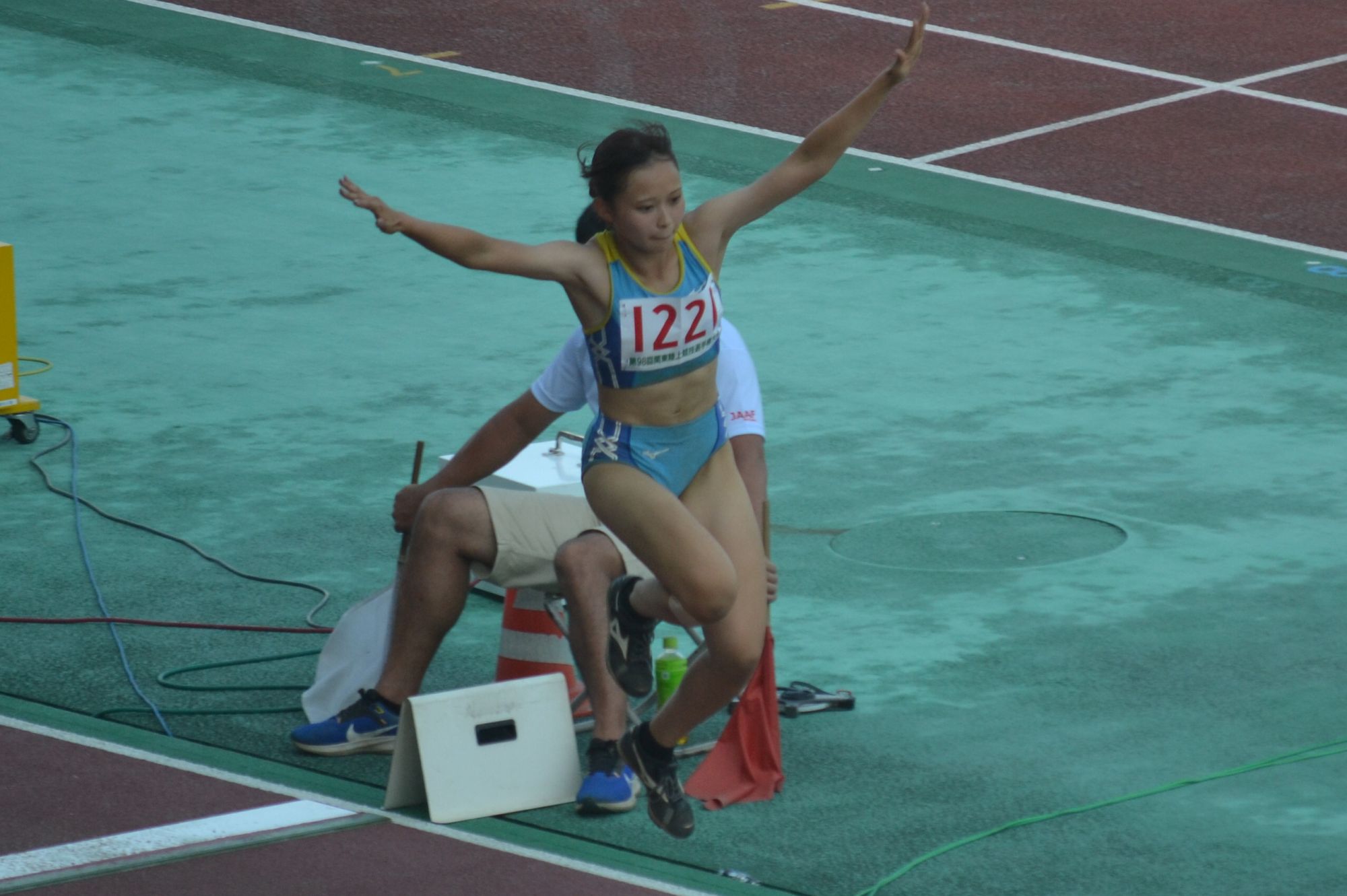 女子三段跳び決勝(6/29)に出場した佐藤友海さん(欧米文化学科2年)は、一回目の跳躍で12m25(+0.3)を跳び2位でトップ8に残ると六回目となる最終跳躍で、さらに記録を伸ばし自己ベストとなる12m40(+0.2)の跳躍で見事優勝に輝きました。また、佐藤さんは、女子走幅跳び(6/28)でも5m37(+0.5)を跳び7位入賞を果たしました。