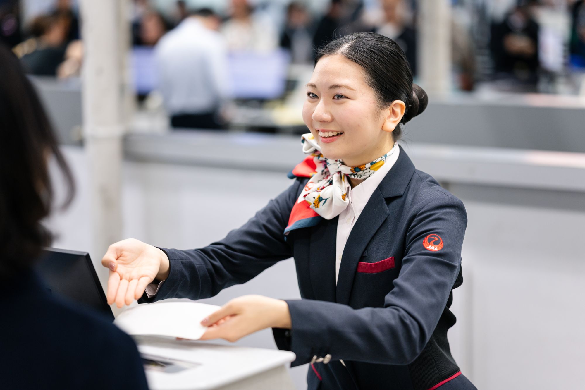 時間に追われる中で、他部署と連携しながら対応する場面も多く、チームワークが欠かせません。それでも田所さんが大切にしているのは、「できません」と断る前に代替案を考えること。荷物の超過があれば、負担の少ない方法を提案するなど、常にお客さまの立場に立つ。その積み重ねが、「人の役に立っている」という実感につながっています。空港は、笑顔の裏で安全な旅を支えるプロフェッショナルが集う場所です。