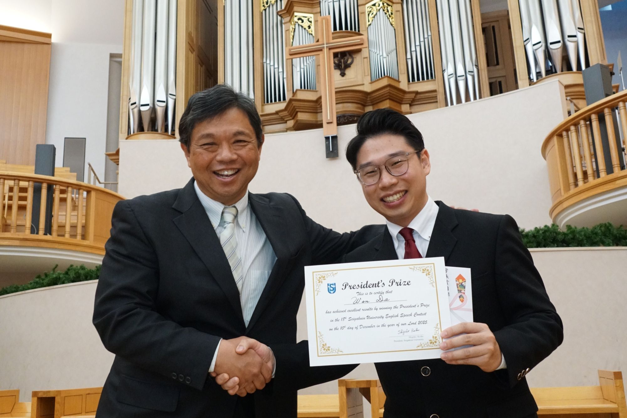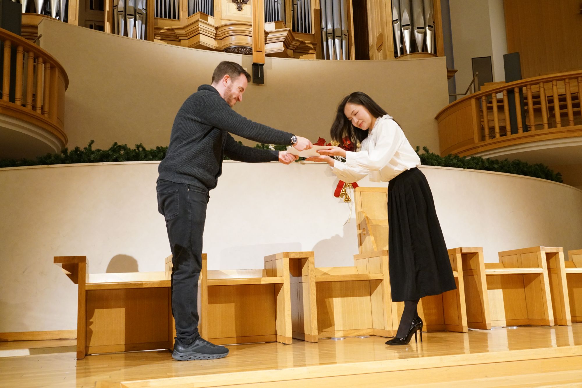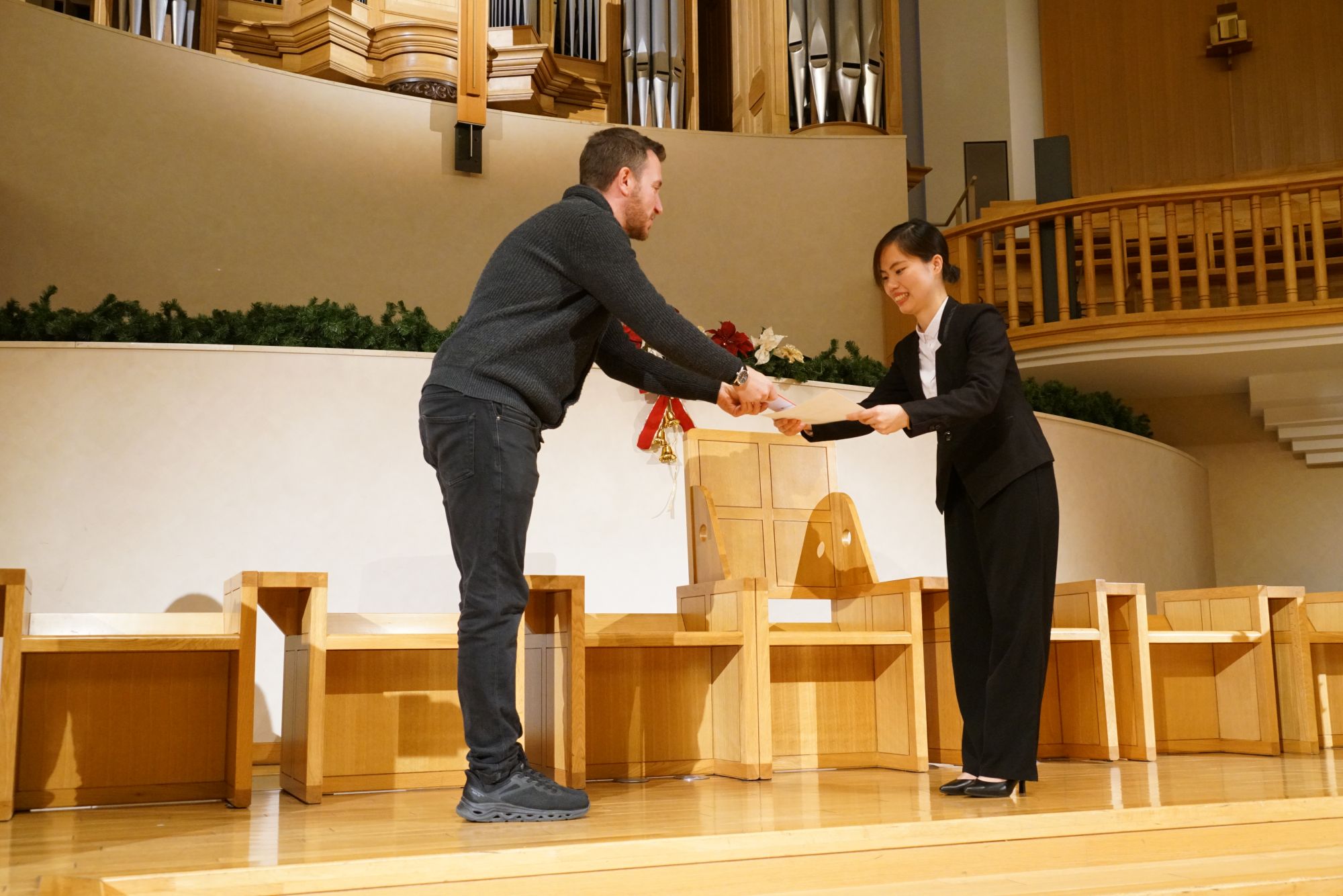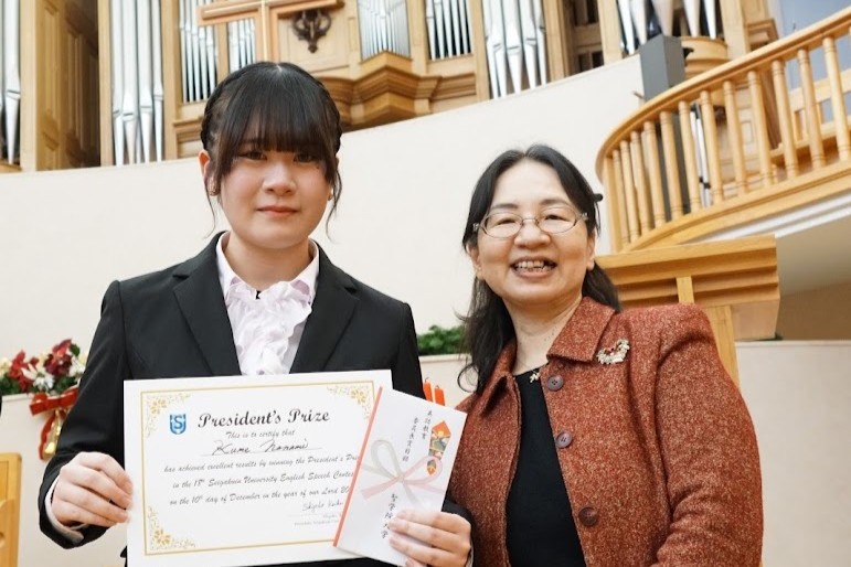 2025年12月10日(水)チャペルにて「2025年度 第18回 聖学院大学 英語スピーチコンテスト」を開催しました。英語スピーチコンテストは、聖学院大学の学生が英語によるスピーチを競うコンテストです。選ばれた5名の学生が熱弁をふるい、ボディーランゲージを交えながら伝えたい想いを聴衆に届けました。