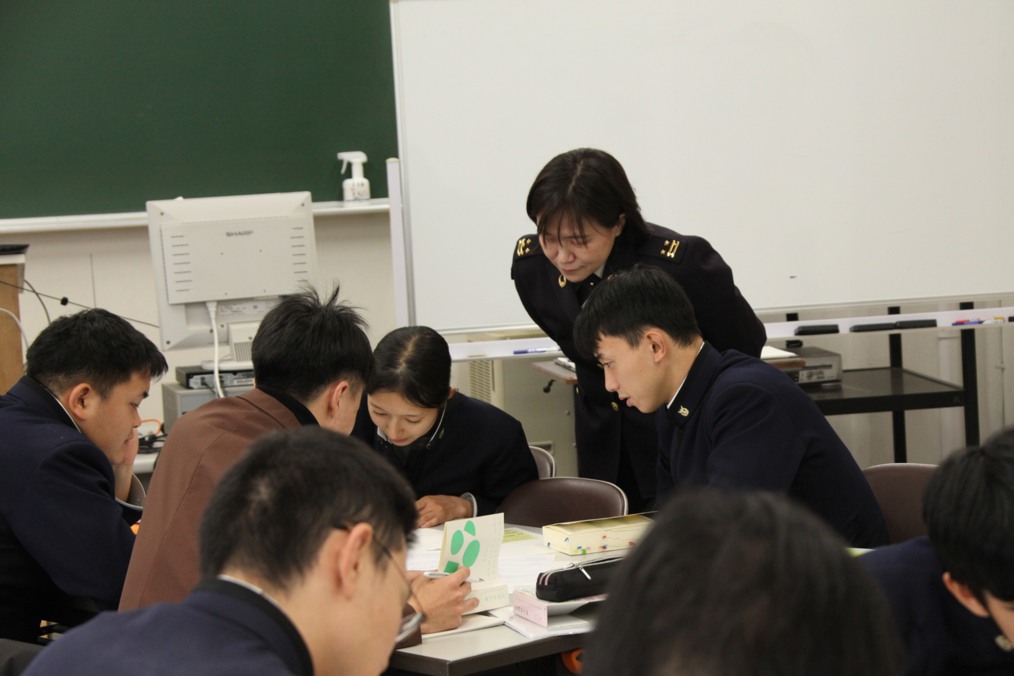 昼食後は教室に移動をして、村田真理准教授(現役自衛官)と本学政治経済学科の鈴木詩衣菜准教授(実施時)がファシリテーターとなり、ワークショップを実施しました。