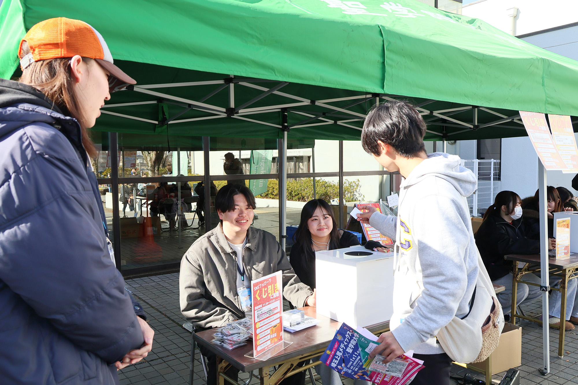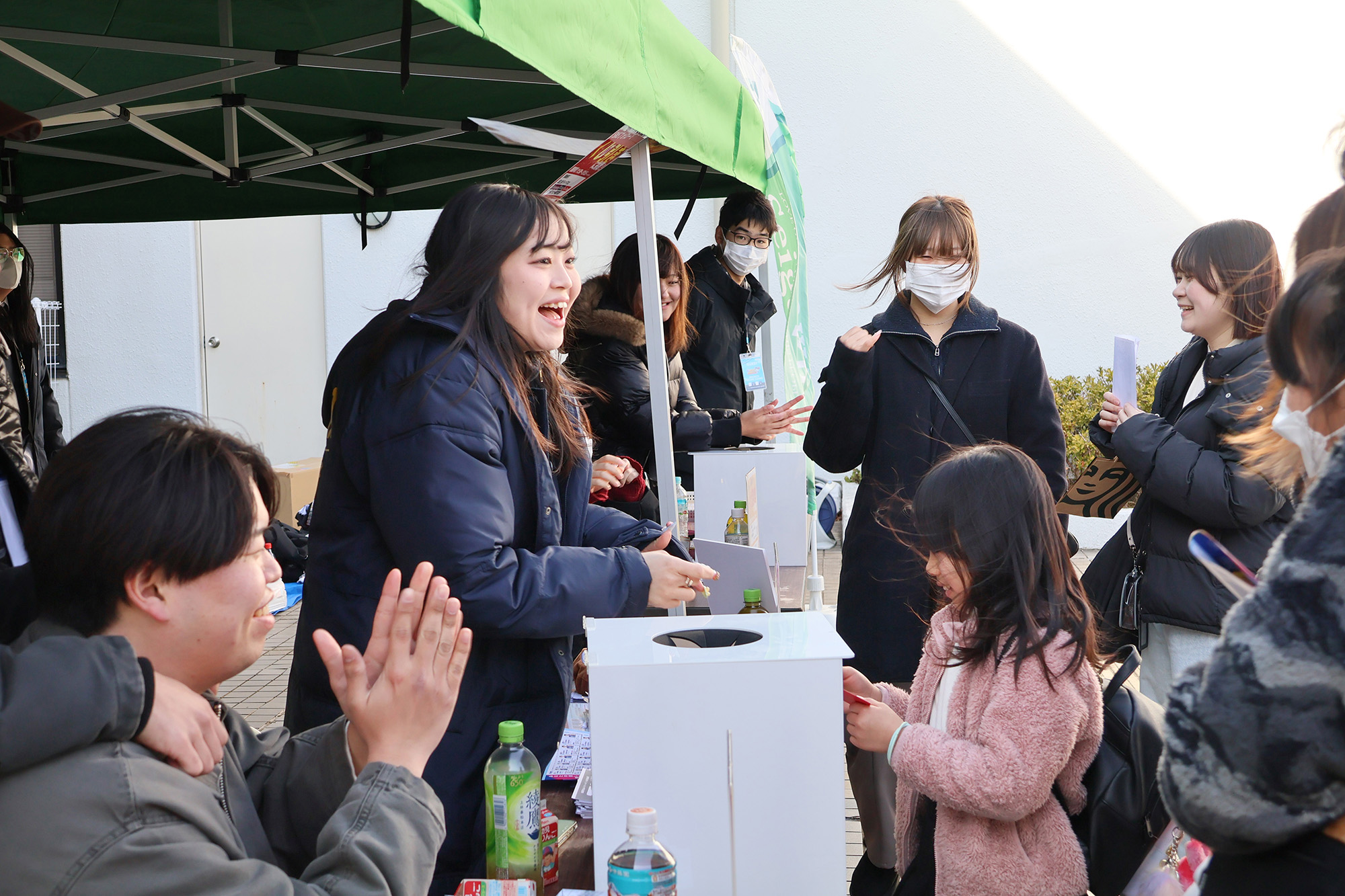 特設ブースでの福引の様子。無料観戦キャンペーンに参加の学生や、地域の子どもたちにも楽しんでもらうことができた。