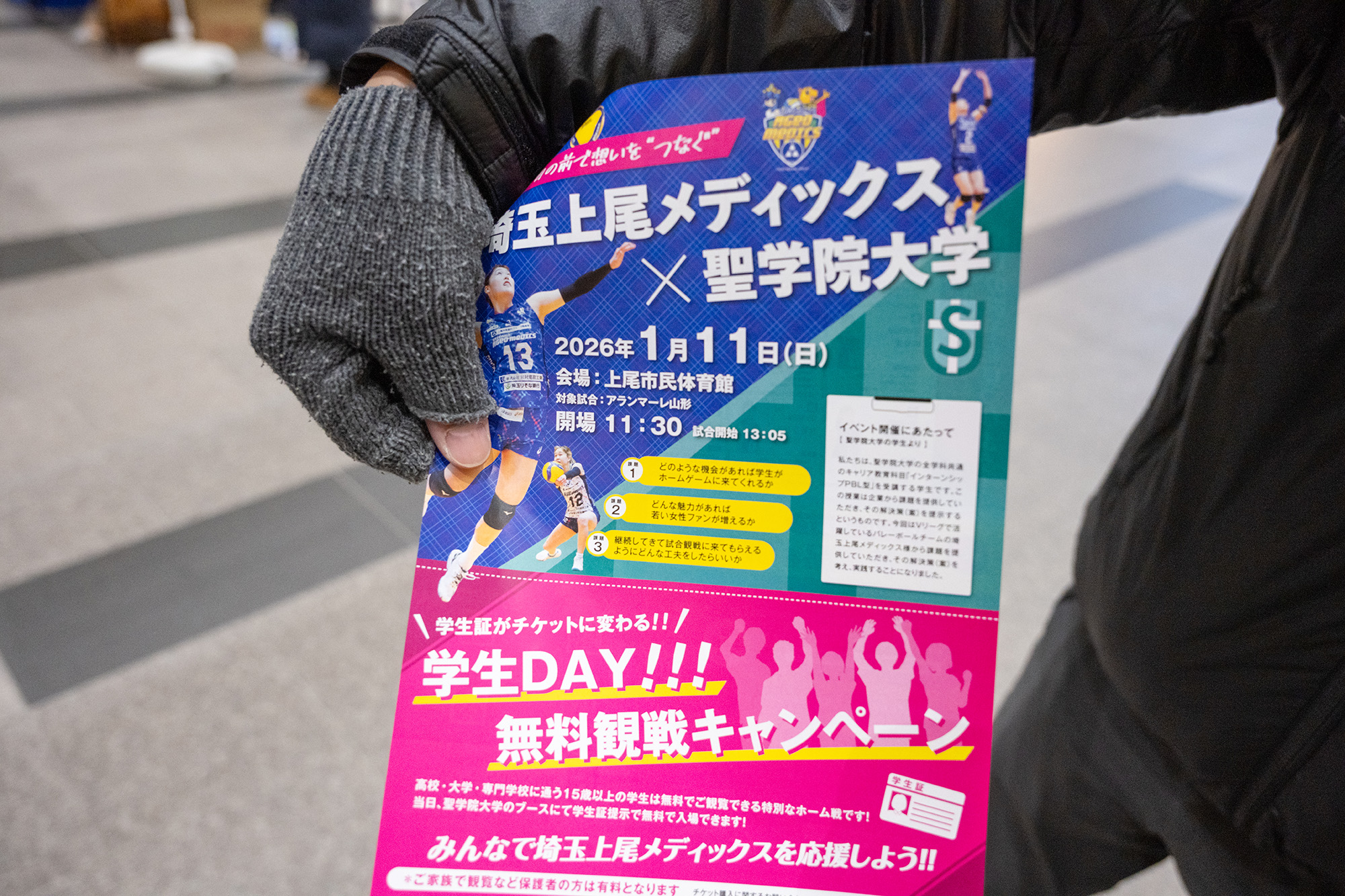 「大学の授業って、教室で話を聞くだけだと思っていませんか?」聖学院大学では、街全体がキャンパスになります。今回スポットを当てるのは、地元上尾市の女子バレーボールチーム「埼玉上尾メディックス」と連携した授業。学生たちがプロチームの課題に本気で向き合い、解決策をカタチにしました。ただ学ぶだけじゃない、誰かの心を動かす実践的な学びのリアル。そこには、一歩踏み出した学生たちの確かな成長がありました。