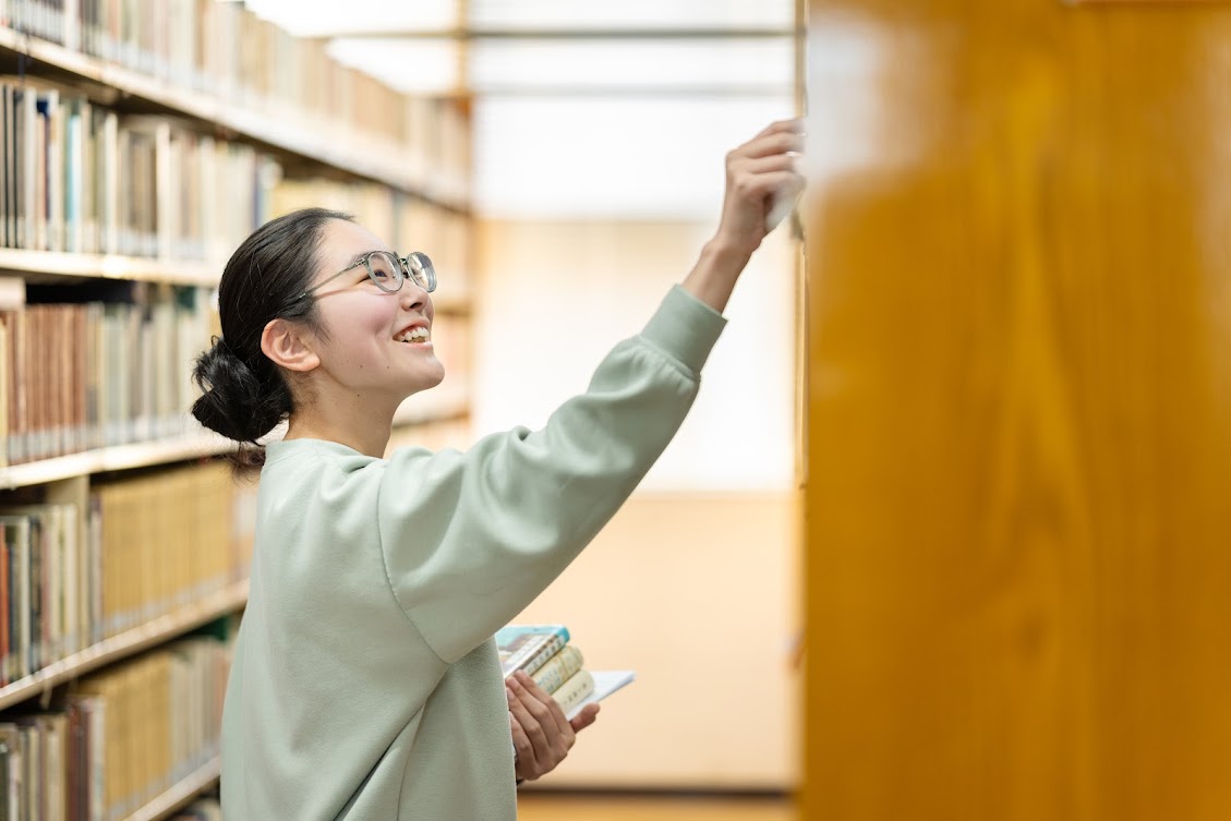 中学生の頃から抱いていた「図書館司書」への憧れ。聖学院大学のオープンキャンパスで先生から、「司書は情報を整理し、活用するプロ。社会のどこでも役立つ力になる」と教わったことが入学の決め手でした。