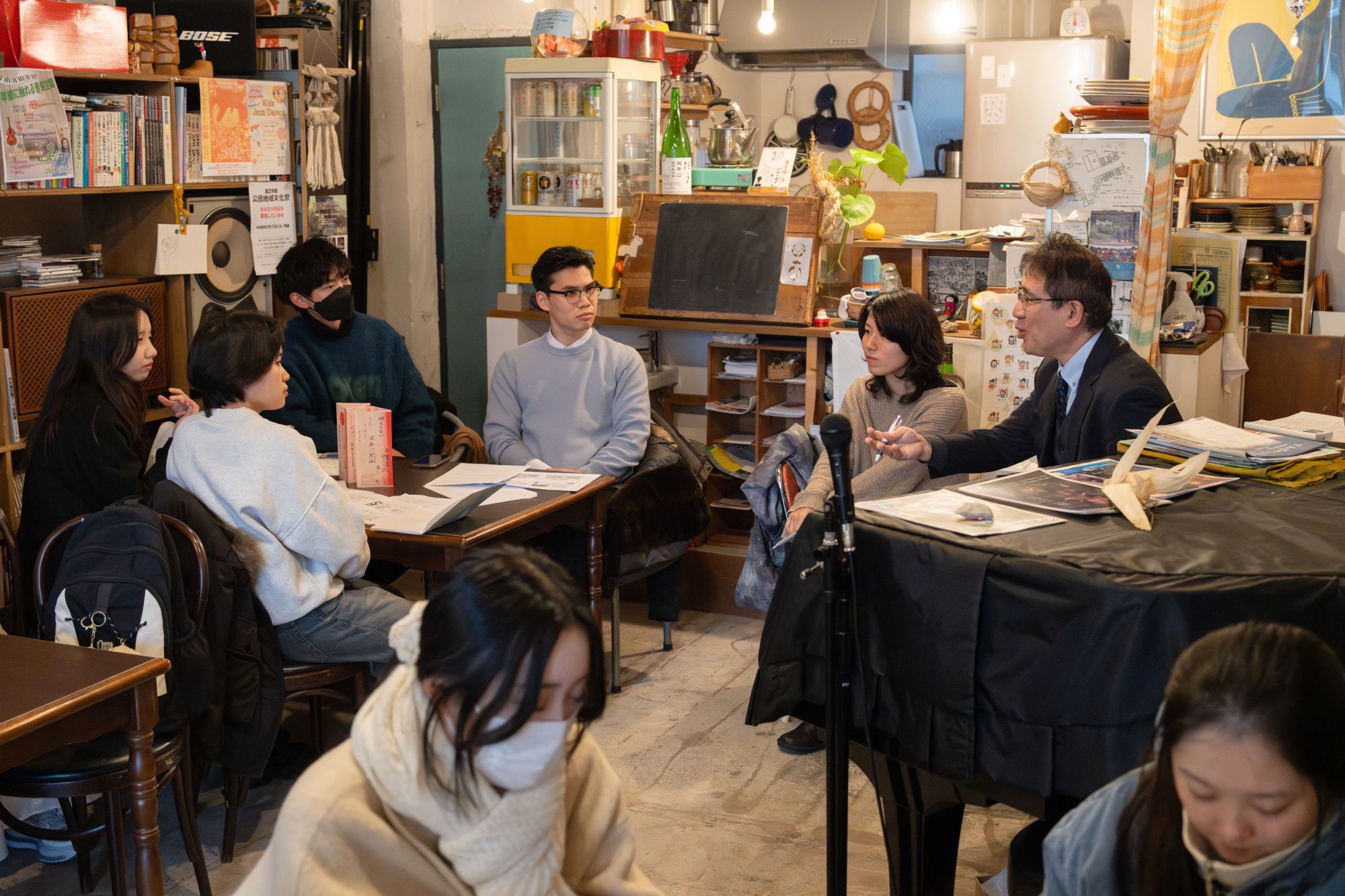 団地では住民の高齢化が進み、それに伴う購買力の低下によって商店街の活気が失われつつあるという課題が説明され、こうした課題に対し、「暮らしの編集室」を中心に、ジャズ喫茶「中庭」の開業や各種スタジオの開設、団地マーケットの開催など、団地内外の人が関われる場づくりのこれまでの取り組みが紹介されました。