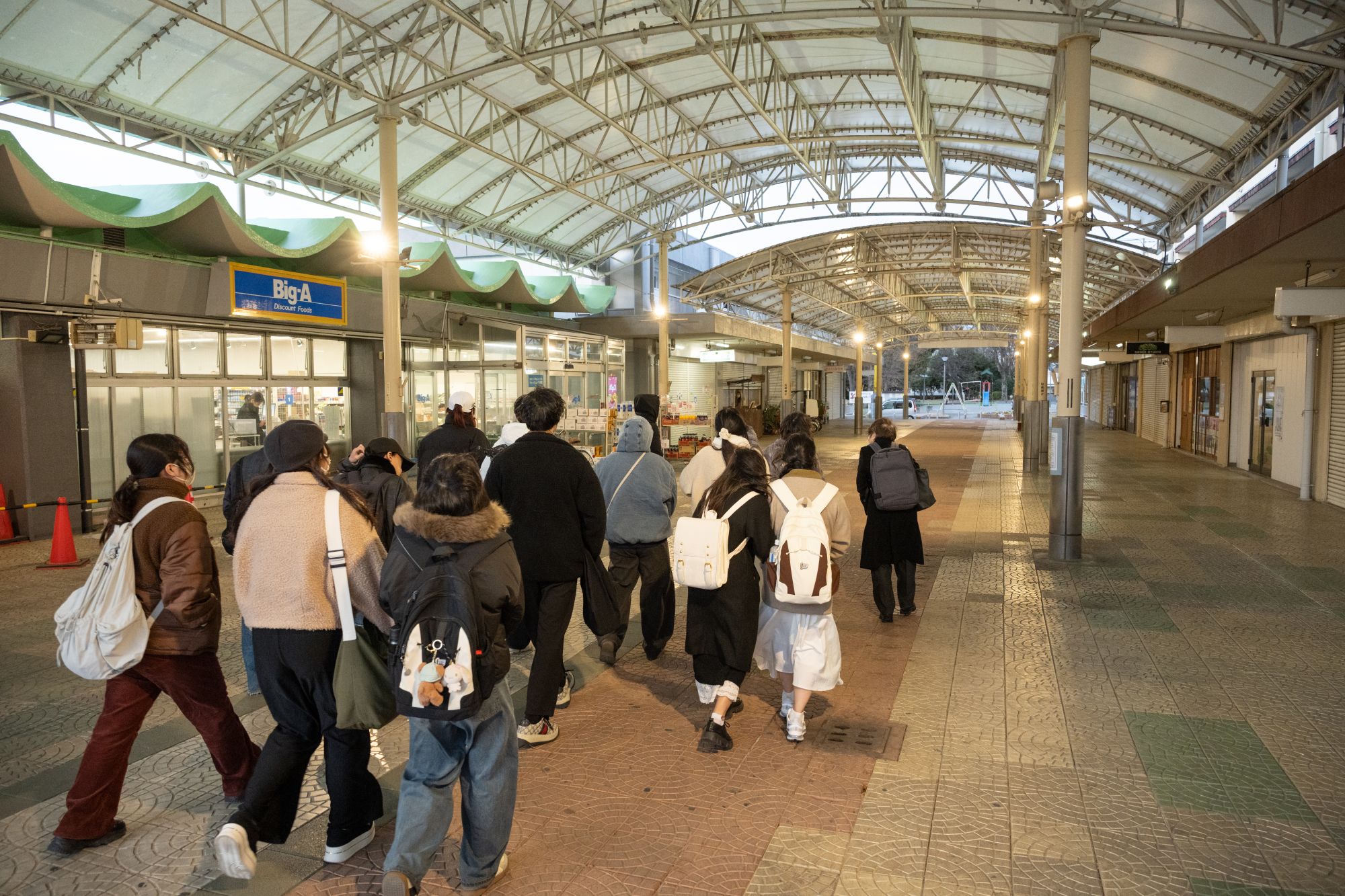 政治経済学科では、教室内の授業だけでなく、実際に現地を訪れ、体験や観察を通じて学ぶ機会を重視しています。今回、学生たちは北本市にある北本団地を訪問。高齢化が進む商店街の現状や団地活性化の取り組みについて、団地を盛り上げる活動をしている「暮らしの編集室」やUR都市機構の担当者から直接話を聞きました。