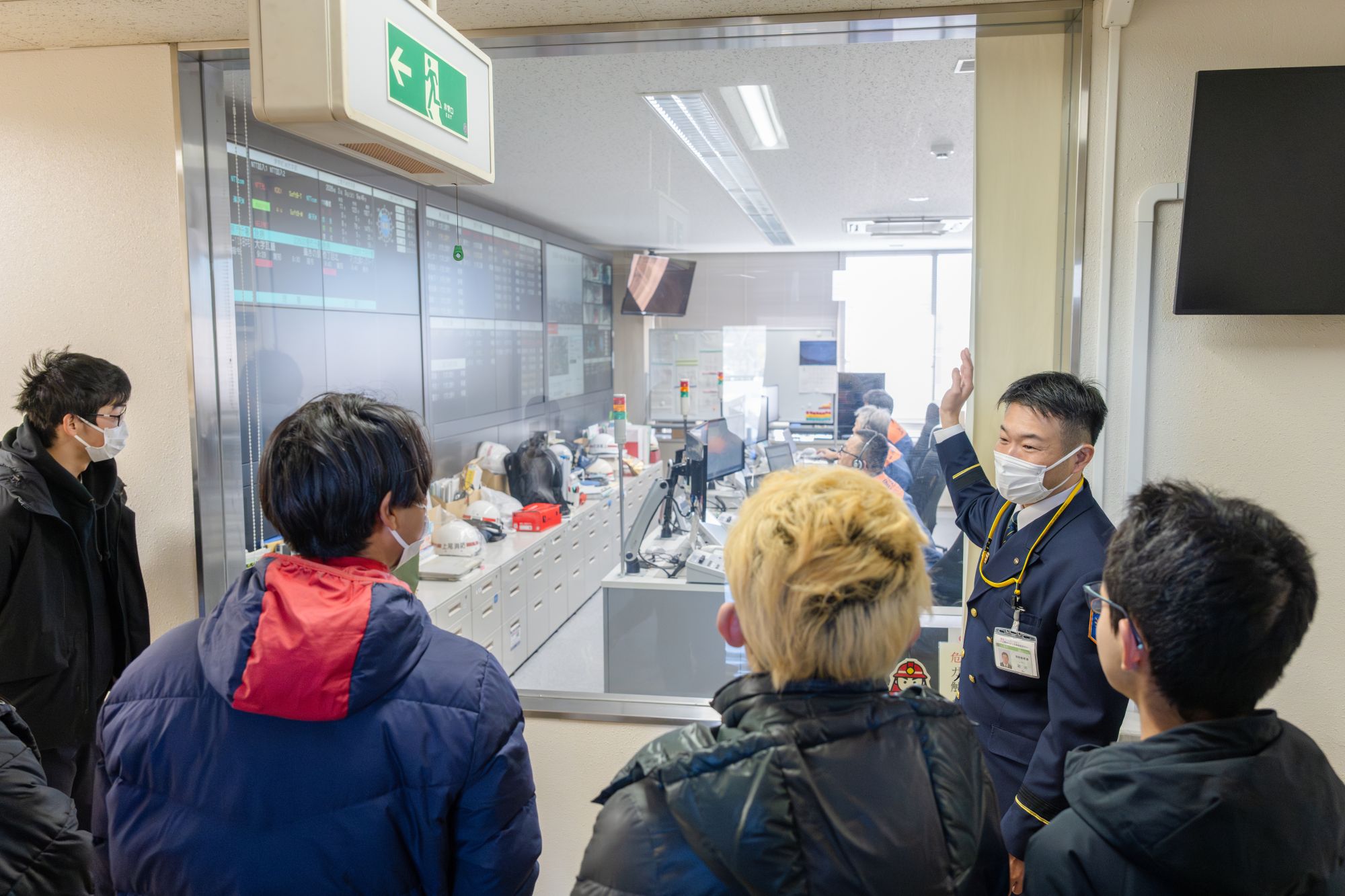 説明の後は、実際に庁舎内を見学。事務所や119番通報を受ける指令室、24時間勤務を支える仮眠室やシャワールームなど、普段は見ることのできない空間を案内していただきました。