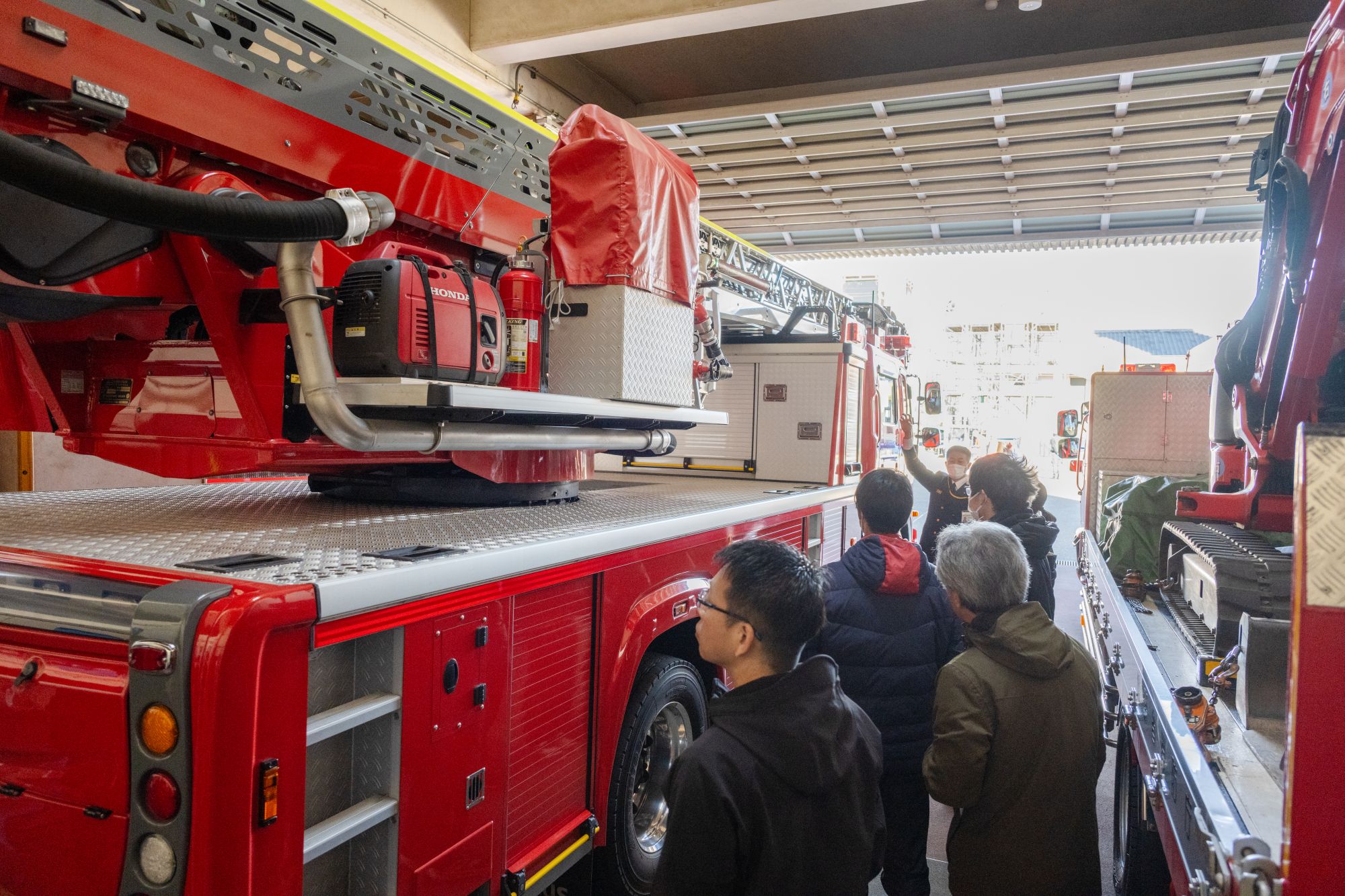 さらに、はしご車やポンプ車、高度救助隊の車両、救急車などを間近で見学。なかなか知ることのできない車両の役割などを解説いただきました。