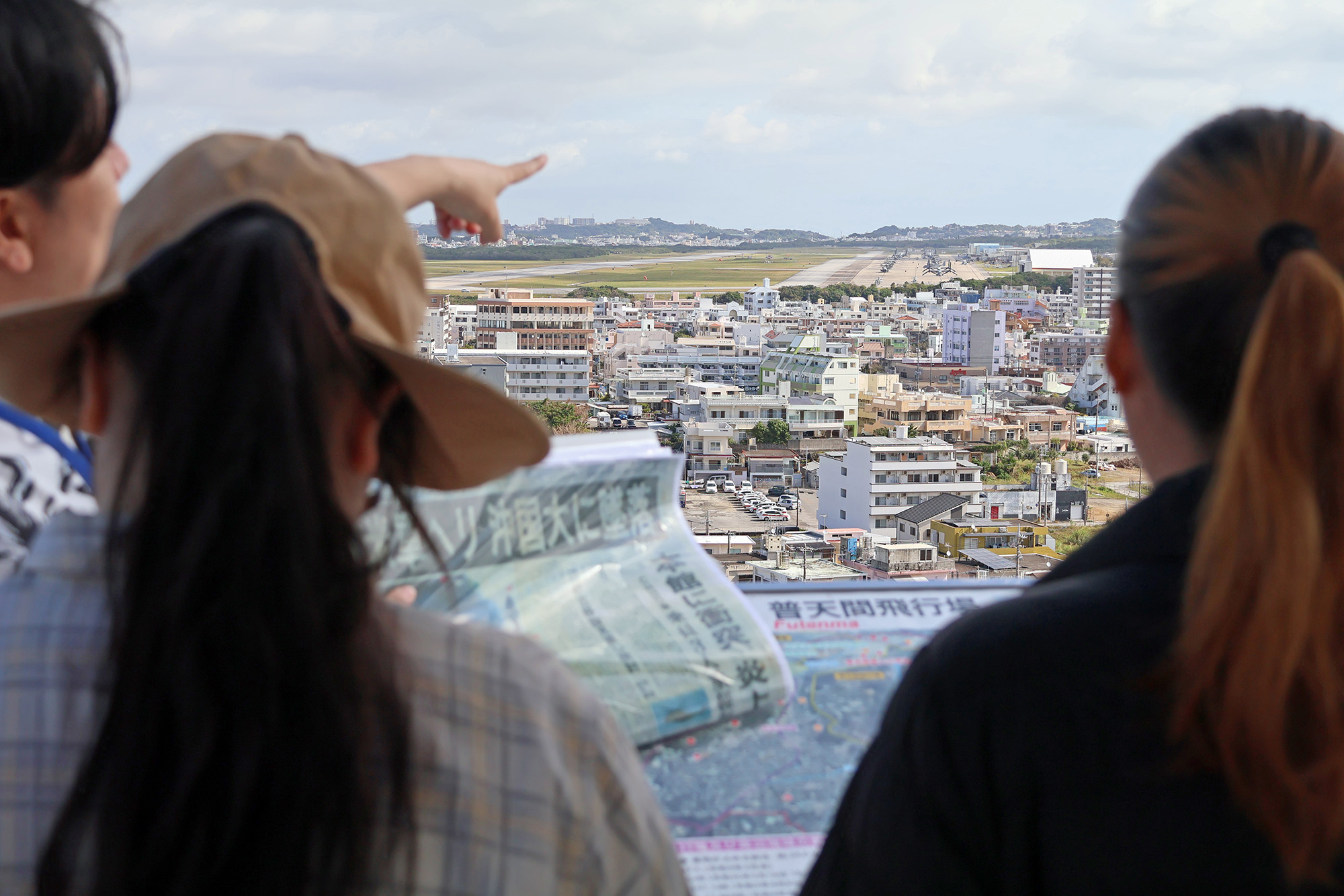 展望台から普天間基地を望む。住宅街と基地が隣り合わせにある沖縄の“日常”に、言葉を失った瞬間です