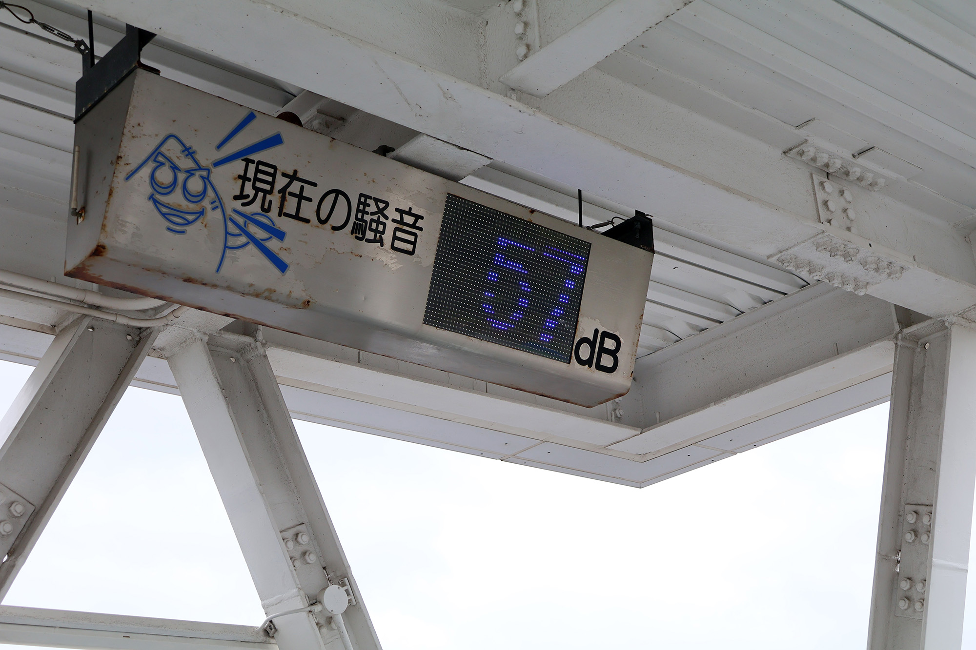 嘉手納基地を一望できる、道の駅かでな。戦闘機離着陸の騒音を数値で表示する電光掲示板